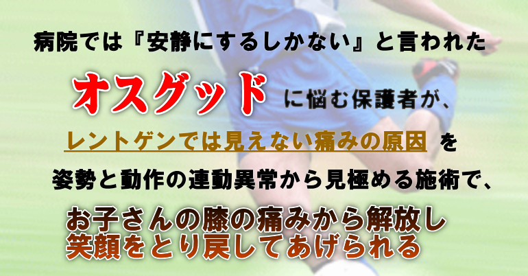 オスグッドは、お子さんにとっても保護者の方にとっても、本当に辛い症状です。